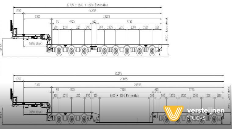 Meusburger MPG-2 AIR suspenison. BPW axle 450 cm extendable. Loading height: 30 cm. Remote control for steering. Wide marker boards. |