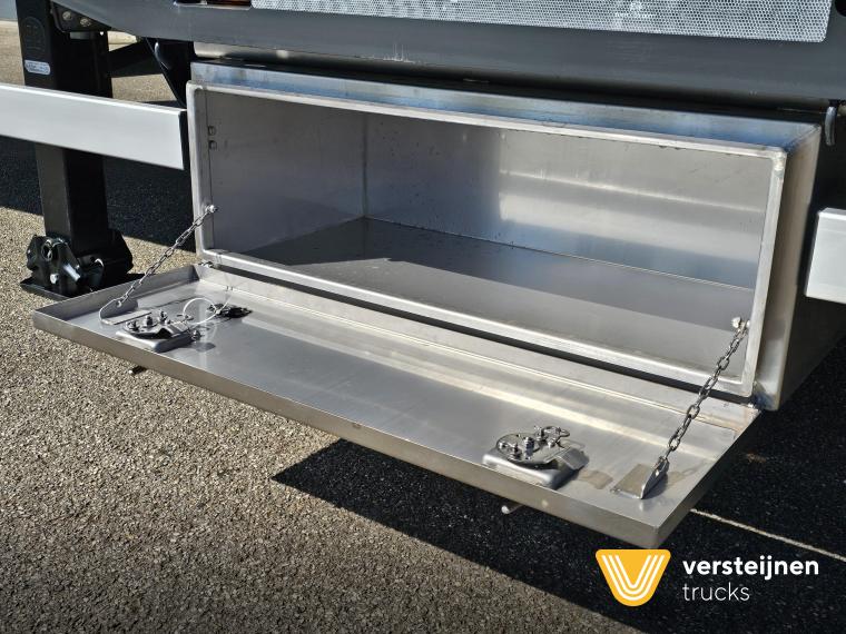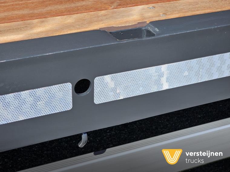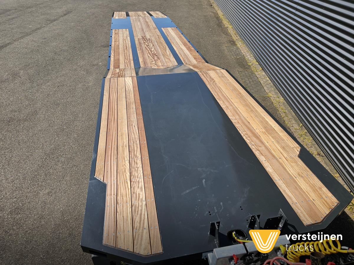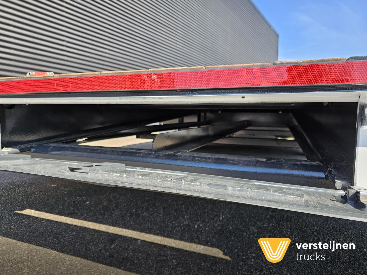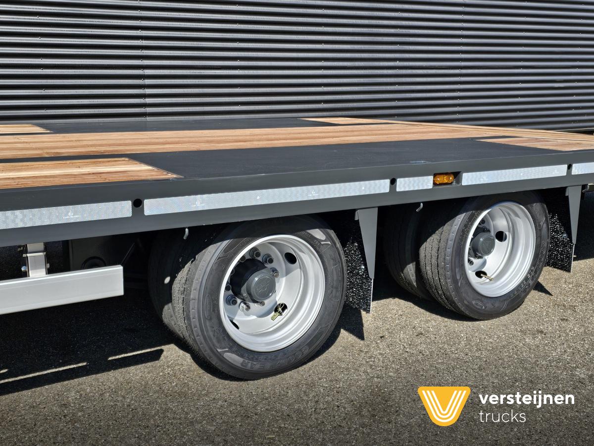 Nieuwe oplegger, direct te leveren. Nog niet geregistreerd. Gescoopeerd ROR assen met trommel remmen. Luchtvering met heffen en dalen ventiel. 4 x Led werklamp. 2 x led flitslamp op achter kader. 4 stuks stopcontact t.b.v. Breedteborden. Randprofiel met gaten rond 30 mm om de 1000 mm. 2 x 10 stuks rongpotten in kantbalk. Bevestigingsconsole t.b.v lier. Achterzijde opbergmogelijkheid voor oprijdbanen, Maximaal maat oprijdbanen: 2400 x 470 x 150 RVS kist 1000 x 350 x 500 mm. Hardhouten vloer. |