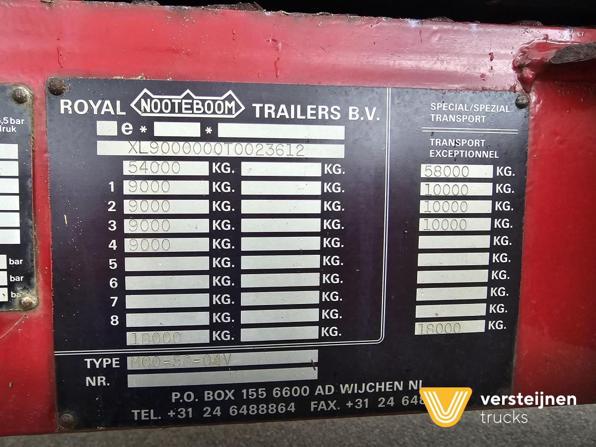 | Omschrijving | Nooteboom MCO-58-04V / 2 x EXTENDABLE / STEERING AXLE kopen? Vind uw tweedehands Oplegger bij Versteijnen Trucks. |
