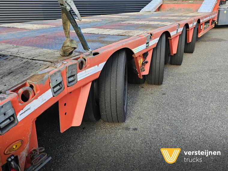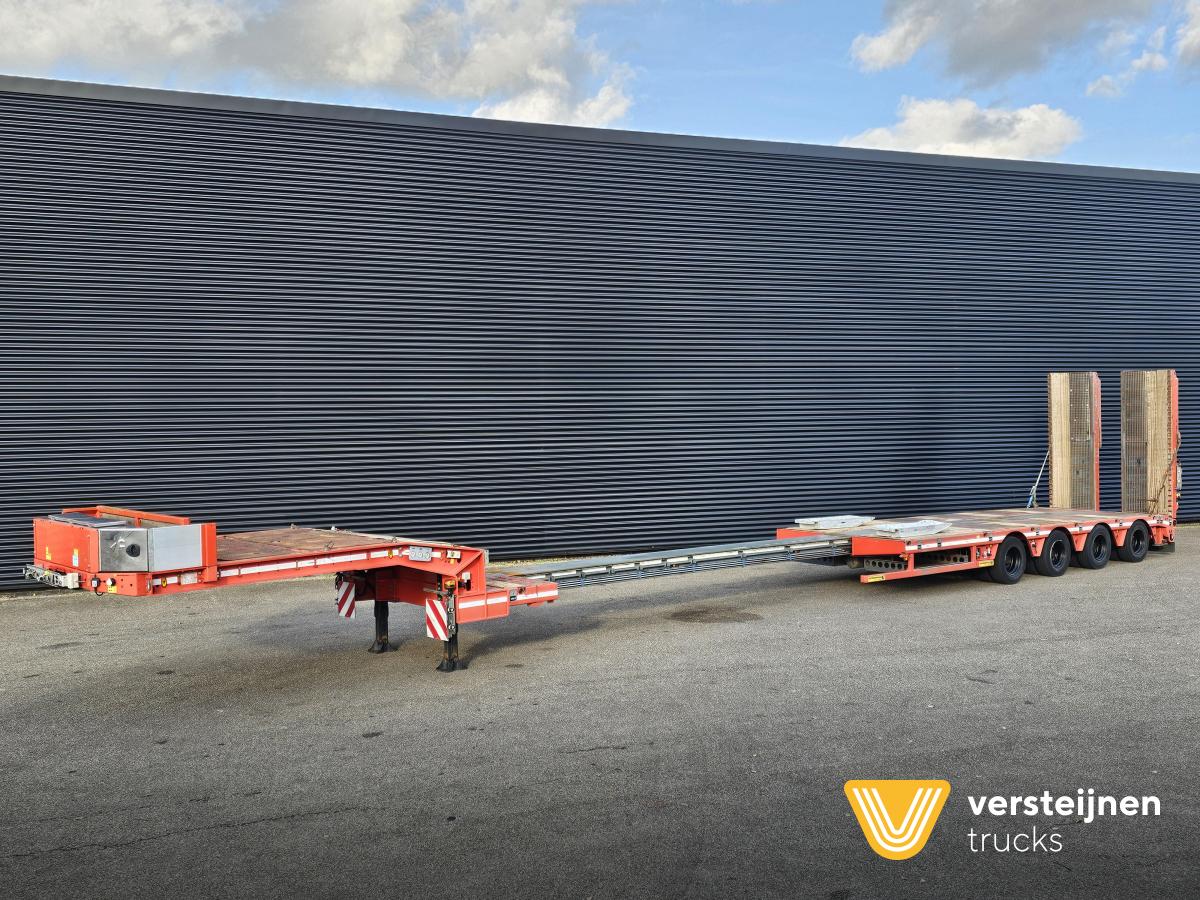 Faymonville F-S44-1BBY 4 x hydraulic steering. 660 cm extendable. Hydraulic ramps working on 24v from tractor. Wideners. Alu ramp for the neck. Wide marke boards. Lash eyes, Stack holes. Wireless remote steering. |