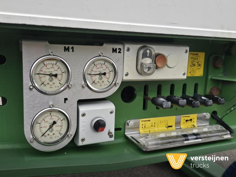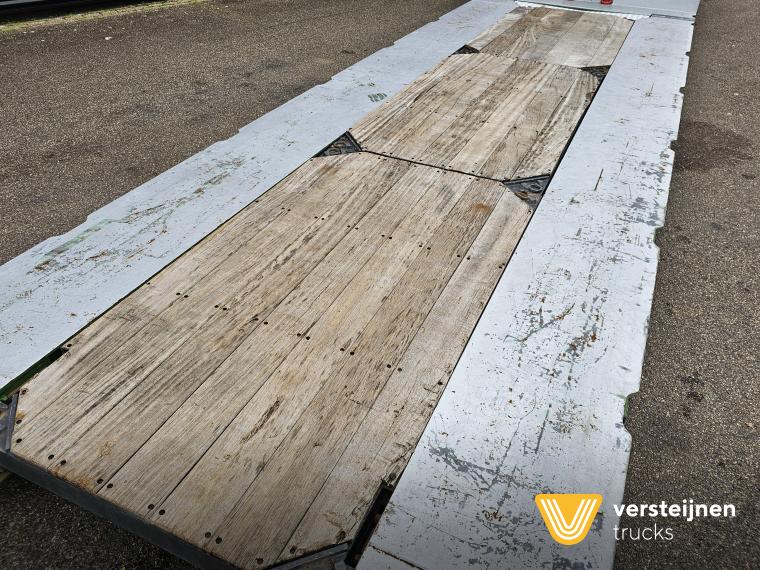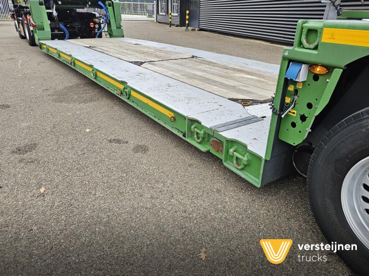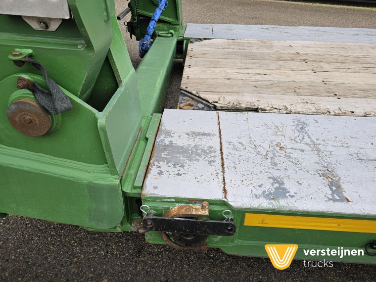Pendel axle with remote steering. Removable floor. Removable neck. Loading bed Length: 800 + 550 cm. Loading wide: 254 cm. Loading height: 37 cm. Wide marker boards. Central lubrication. |