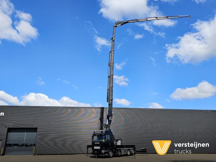 Scania R490 8x2 Adjustable 5th wheel. Wheelbase first till second axle 450 cm. Crane HMF 8520 K6 Fly jib FJ200 K6 Winch. 4.40 mtr - 16.650 kg, 6.00 mtr - 11.870 kg, 7.70 mtr - 9.060 kg, 9.50 mtr - 7.110 kg, 11.40 mtr - 5.840 kg, 13.50 mtr - 4.880 kg, 15.60 mtr - 4.220 kg, Fly jib. 6 x hydraulic extension. 2 x manual extension. Hydraulic reach 28.5 mtr - 930 kg. |