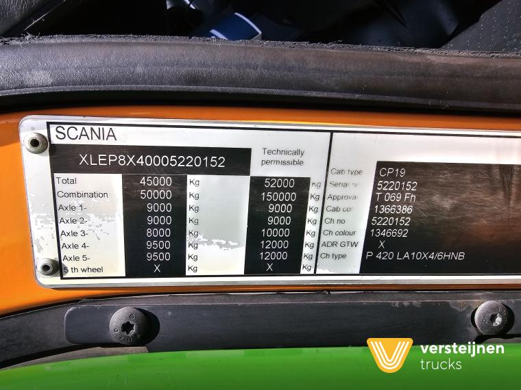Scania P420 10x4/6 Lift axle. Hub reduction. Manual gearbox. Retarder. 3.5'fth wheel. Technical max Vehicle weight: 54.000 kg. Technical Max combination weight: 150.000 kg. |