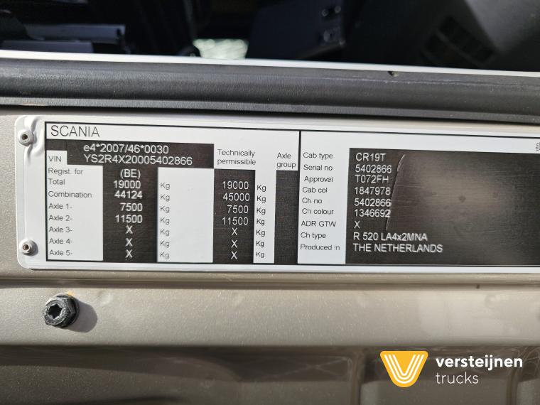Scania R520 V8 Topline. Hydraulic. Retarder. parking cooler. Leather seats. Fridge. Complete spoiler set. Adaptive cruise control. |