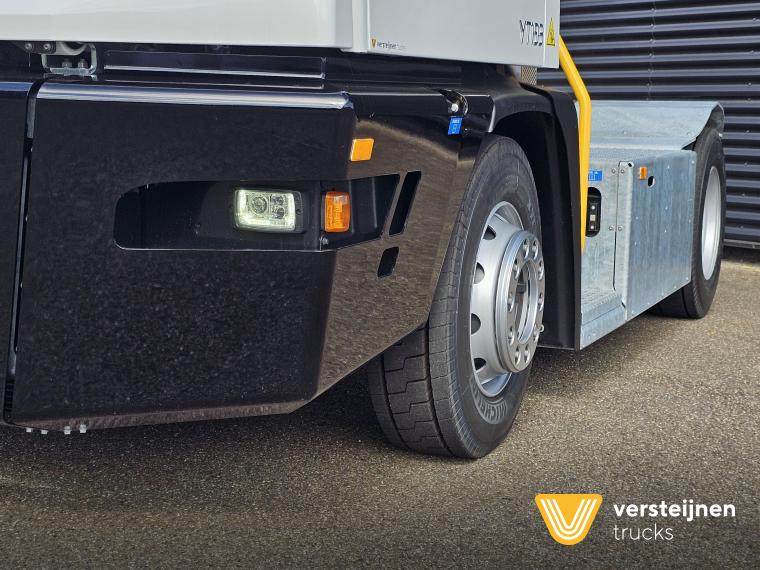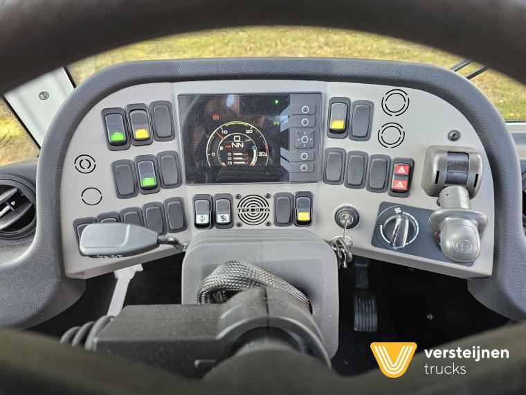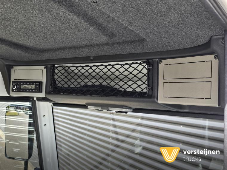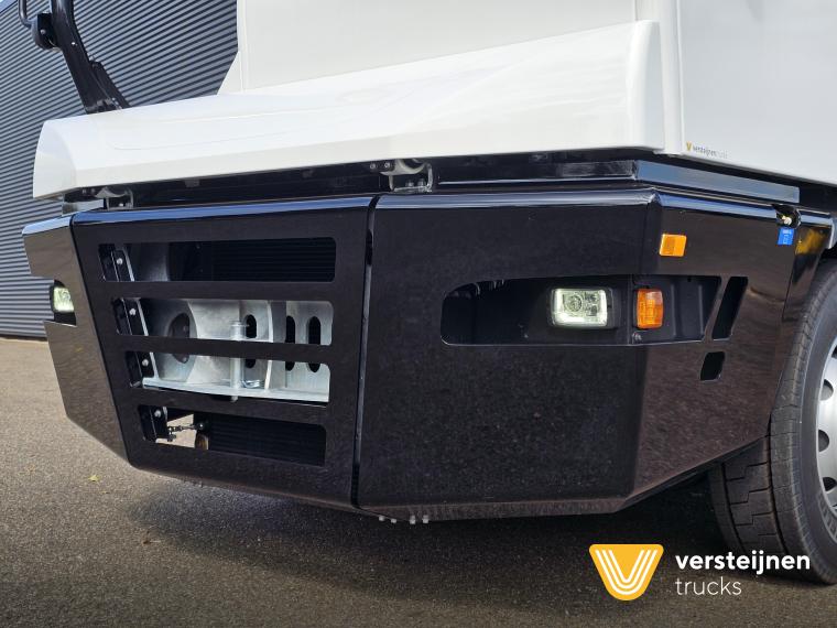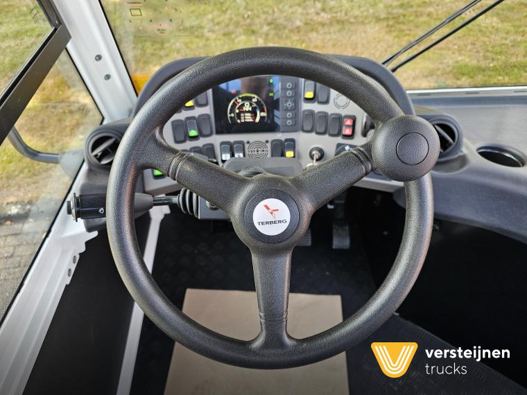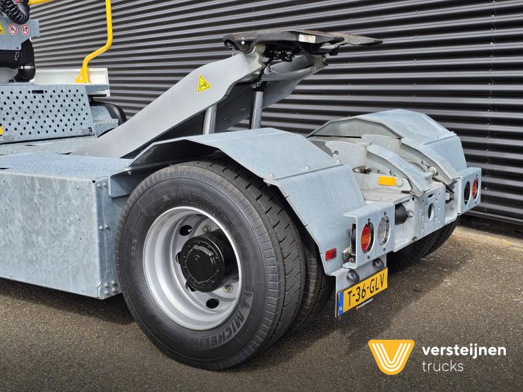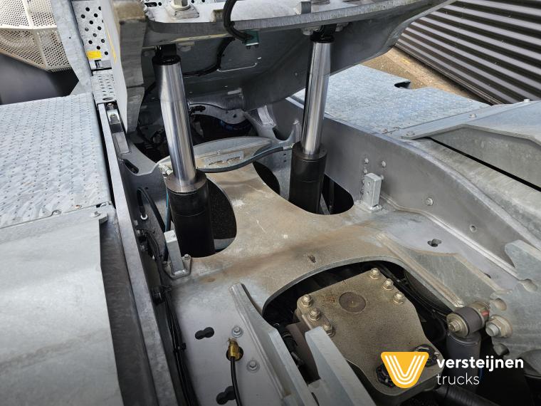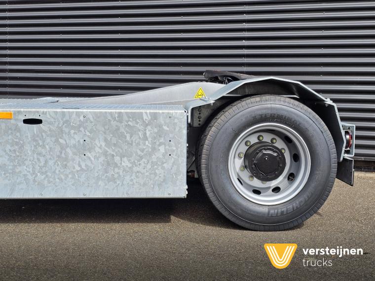 Cabine • Ruitenwisser vóór met ruitensproeier en interval • 2 buitenspiegels • 1 paraboolspiegel • Grote binnenverlichting • Geïntegreerde verwarming • Ruitenwisser voorzijde cabine • Zonneklep voorzijde (horizontaal, volle breedte op voorruit) • Horizontale schuifruit aan bestuurderskant • Alle ramen gehard en getint veiligheidsglas (voorruit gelaagd) • Full color multifunctioneel 5” CAN-bus informatiescherm (DIM) • Opbergruimte voor beker, documenten, helm en accessoires • Geveerde cabine • Kantelbegrenzer • Gele handgrepen (RAL1003) • Spatlappen links + rechts op cabine boven voorwielen Elektra • 7-polige elektrakabel • Achteruitrijdzoemer (90 dB(A)) • LED-zwaailamp • CAN-bus gestuurd systeem • Schakelaars met LED-controlelamp • Claxon • LED-koplampen met knipperlichten en LED-achterlichten (achterzijde cabinedak) • LED-werklamp op achterzijde cabinedak (deurzijde) • 7-polige elektra-aansluiting achter cabine (24V, ISO1185) • 7-polige elektra-aansluiting achter cabine (ABS/EBS, ISO 7638) • Snelheidsmeter (km/uur) • Luchtketels, totale capaciteit 111 liter • 2-leiding AHW-remsysteem achter cabine, met gele en rode spiraalslangen + automatische koppelingen • Remsysteem conform EG 71/320 • Luchtdroger in remsysteem Achteras • Minimale schotelhoogte: ± 1177 mm (andere hoogtes op verzoek) • Maximale hefhoogte: ± 1635 mm (vanaf de grond) • Kunststof spatborden • Oprijdprofielen naar de schotel • Luchtvering Openbare weg pakket Nederland (mobiele machines) • Snelheidsbegrenzing: max. 40 km/h • Achterverlichting verplaatst naar achterplaat • Trottoirspiegel • Achterreflectoren • RDW-keuring en registratie Brandstof/Hydrauliek • Hydrauliektank 60 liter • Dubbelwerkende hydraulische hefcilinders (enkeltraps, slag 425 mm) Chassis • Bumperpenvoorziening voor- en achterzijde • Chassis achterzijde voorbereid voor drawbar-koppeling • Afdekplaten en zijpanelen bij de zijkasten (links + rechts) • Liftframe, zijpanelen, treden en beplating thermisch verzinkt Stuurinrichting & Hydraulisch systeem • Vaste, naar voren gerichte stuurkolom • Hydraulische tank 60 liter • Dubbelwerkende hefcilinders, slag 425 mm • Koppelschotelontgrendeling alleen bij stilstand (< 2 km/h) • Ontgrendelen koppelschotel via twee schakelaars |