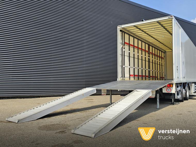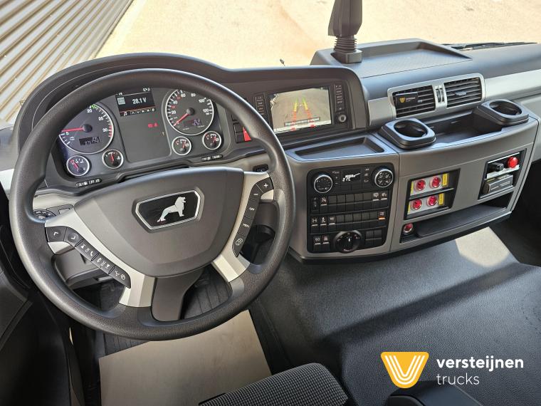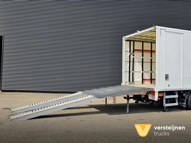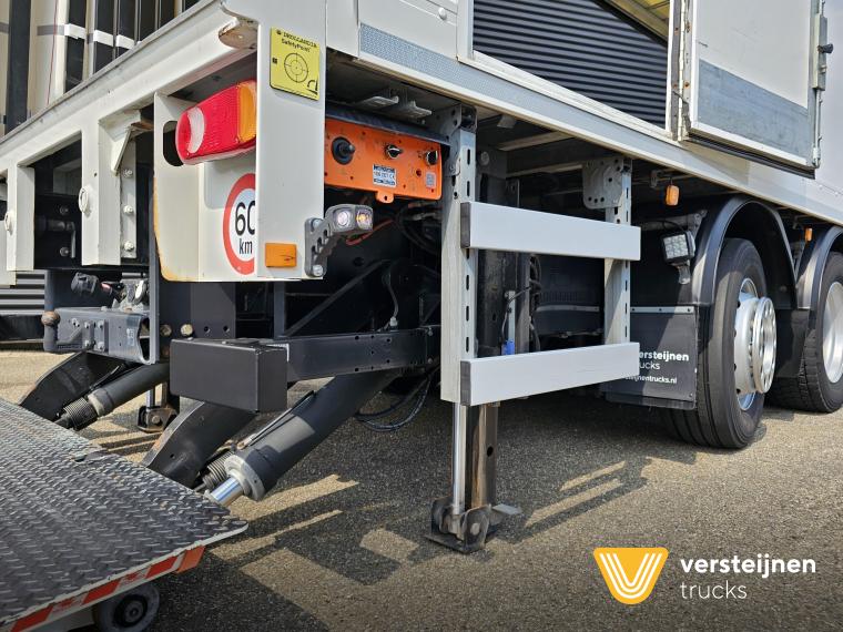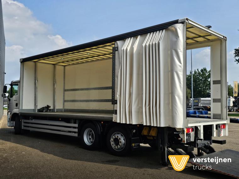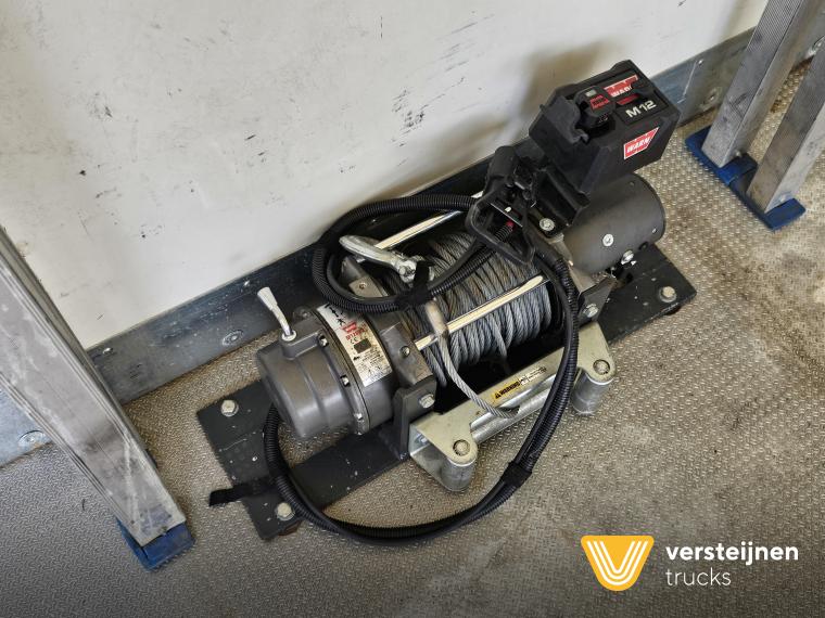 Man TGM 26.320 6x2-4 Lift + steering axle. Full air suspension. Loading box with on the left side curtain. Right side Plywood with side door. Inside dimension: 905 cm x 249 cm. Height: 255 cm. Winch: Warn 5400 kg. Dholandia tail lift: 6.000 kg. 267 cm. |