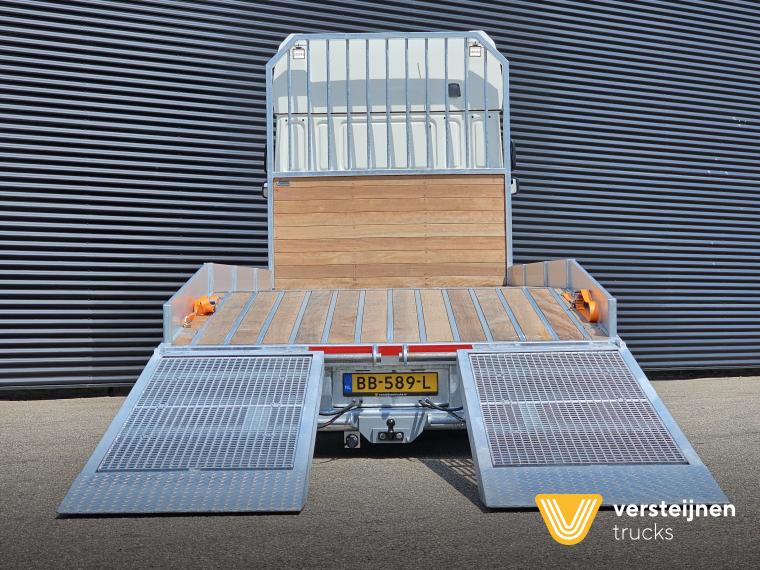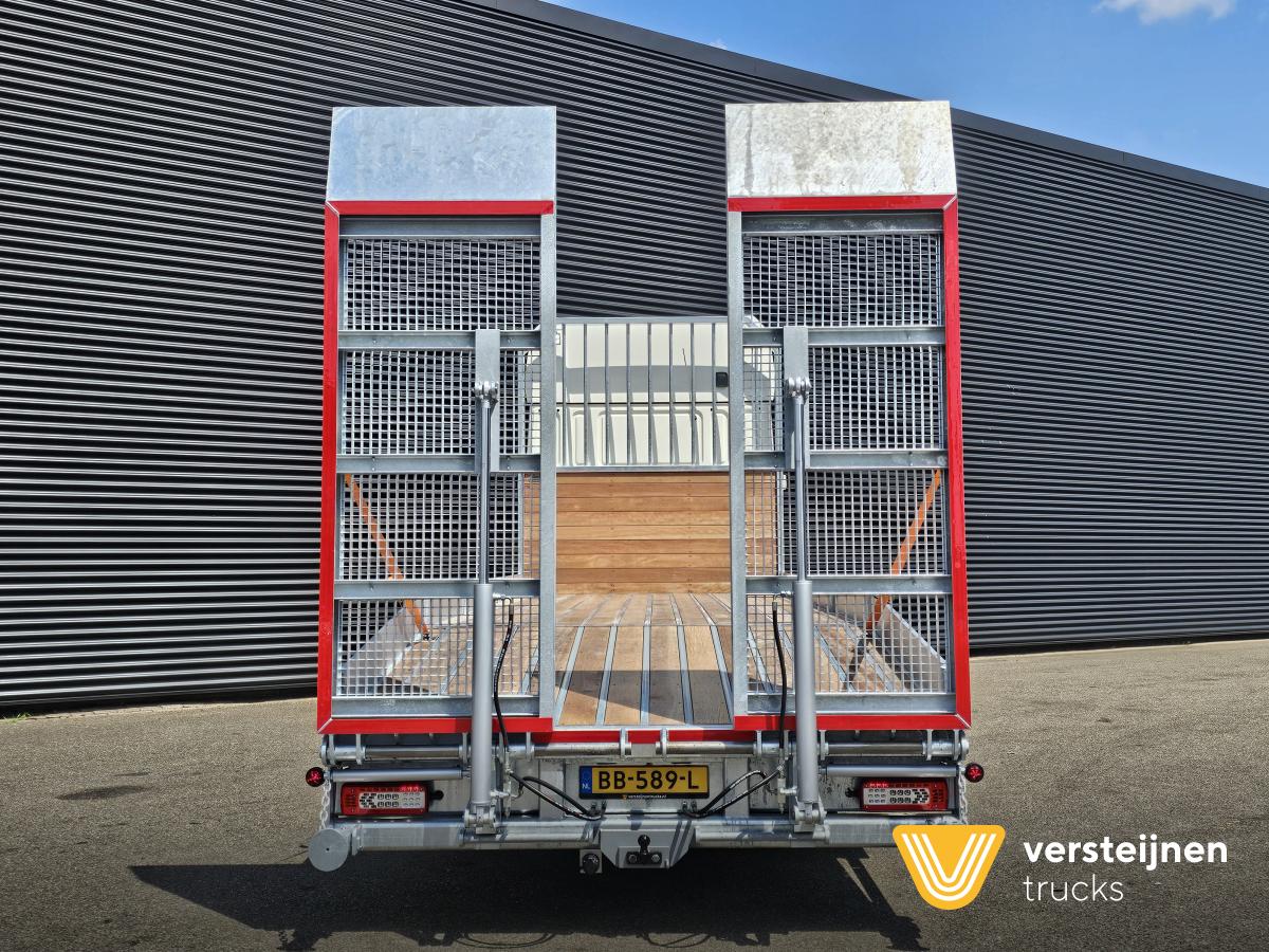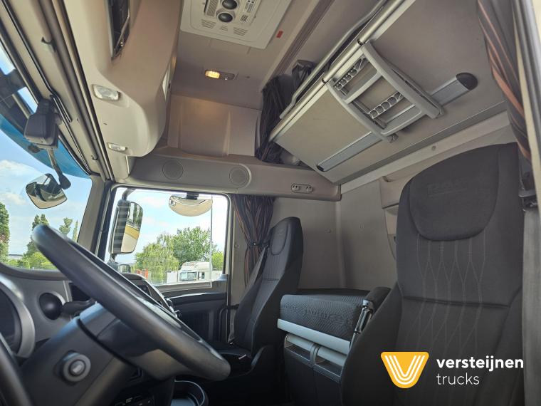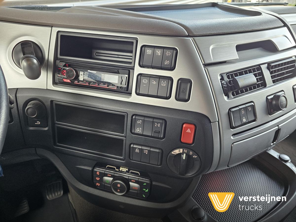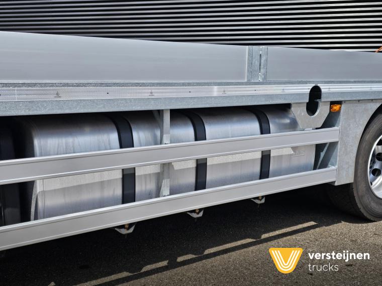 Daf XF 450 Superspacecab. 6x2 met liftas. Euro 6. Stand airco. Nieuwe oprij bak. Lengte: 785 cm. Breedte tussen de rongen: 243 cm Laadvloer breedte: 255 cm. Laadvloer hoogte 109 cm. Gegalvaniseerd. Hydraulische rampen. Hydraulisch tegen elkaar aan te schuiven. 2 x RVS gereedschap kist. Hardhouten vloer. Bindogen verzonken in de vloer. Afneembare rongen en schotten. 3.500 kg kogelkoppeling. |