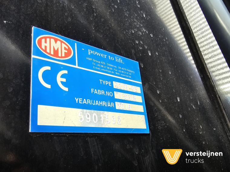 HMF 3220 K8 Winch. 4 x hydraulic outrigger. Scanreco radio remote control. 4.70 mtr - 5.770 kg. 6.50 mtr - 3.860 kg. 8.40 mtr - 2.750 kg. 10.40 mtr - 2.040 kg. 12.50 mtr - 1.580 kg. 14.60 mtr - 1.270 kg. 16.70 mtr - 1.060 kg. 18.90 mtr - 910 kg. 21.20 mtr - 800 kg. Loading box with twist locks. Removable aluminium boards: 80 cm. Loading height: 125 cm. VBG Trailer coupling. |