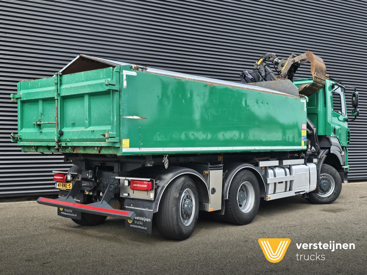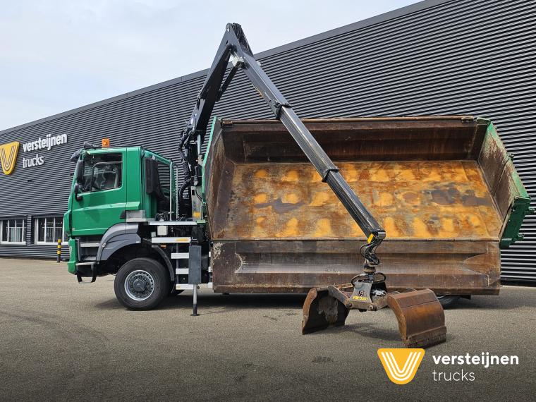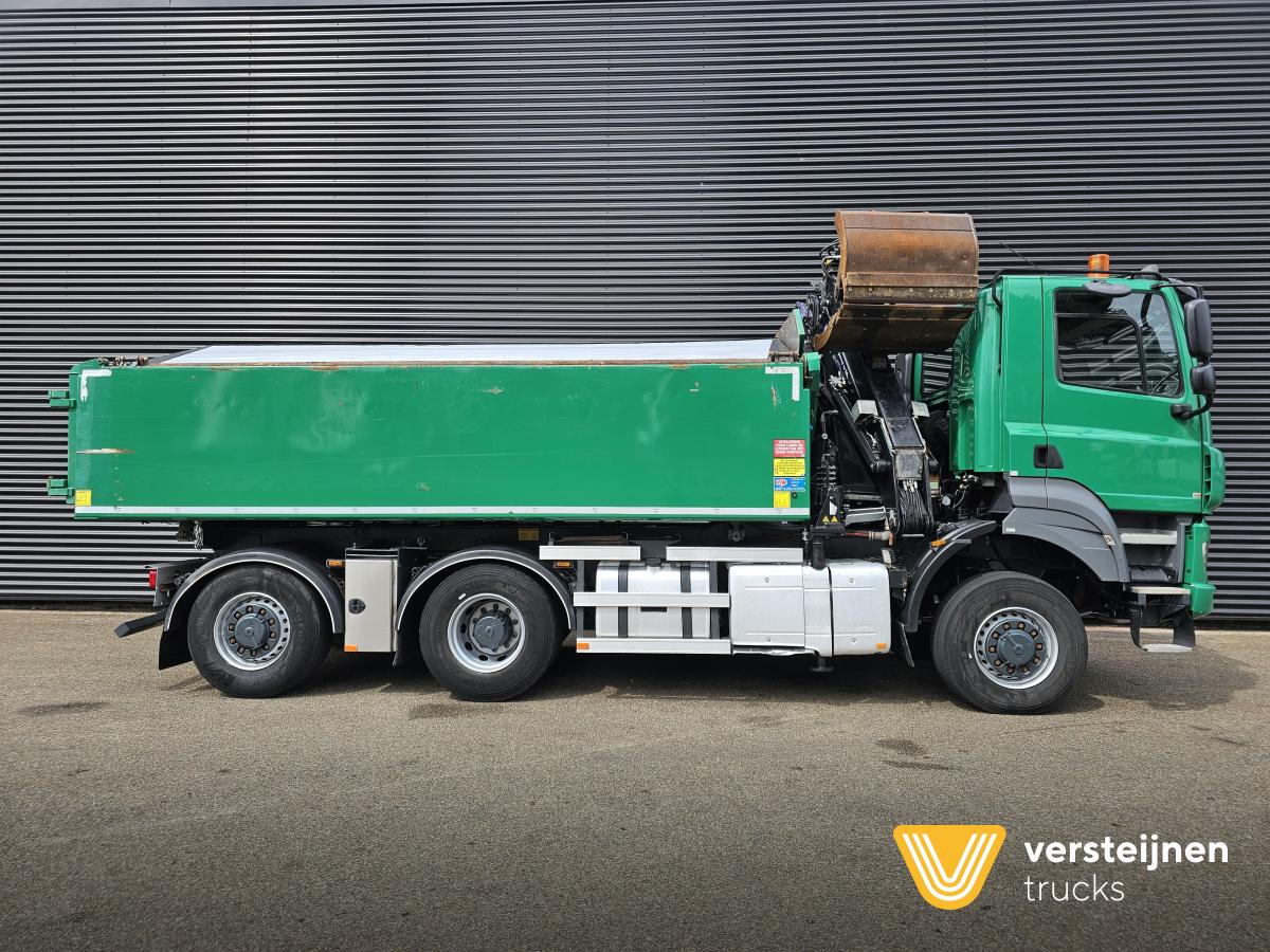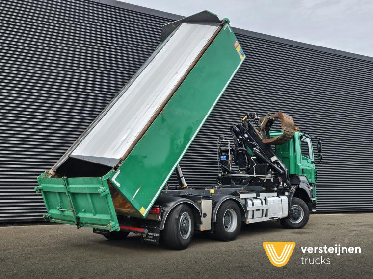 HMF Z kraan. Type 1643 hydraulic outriggers. 2 x hydraulic extension. Bakker graph. 2 side tipper with back doars. Hydraulic side board. Top cover. |