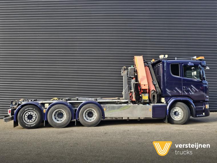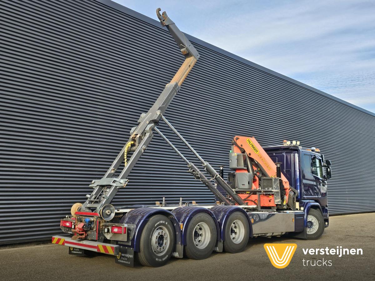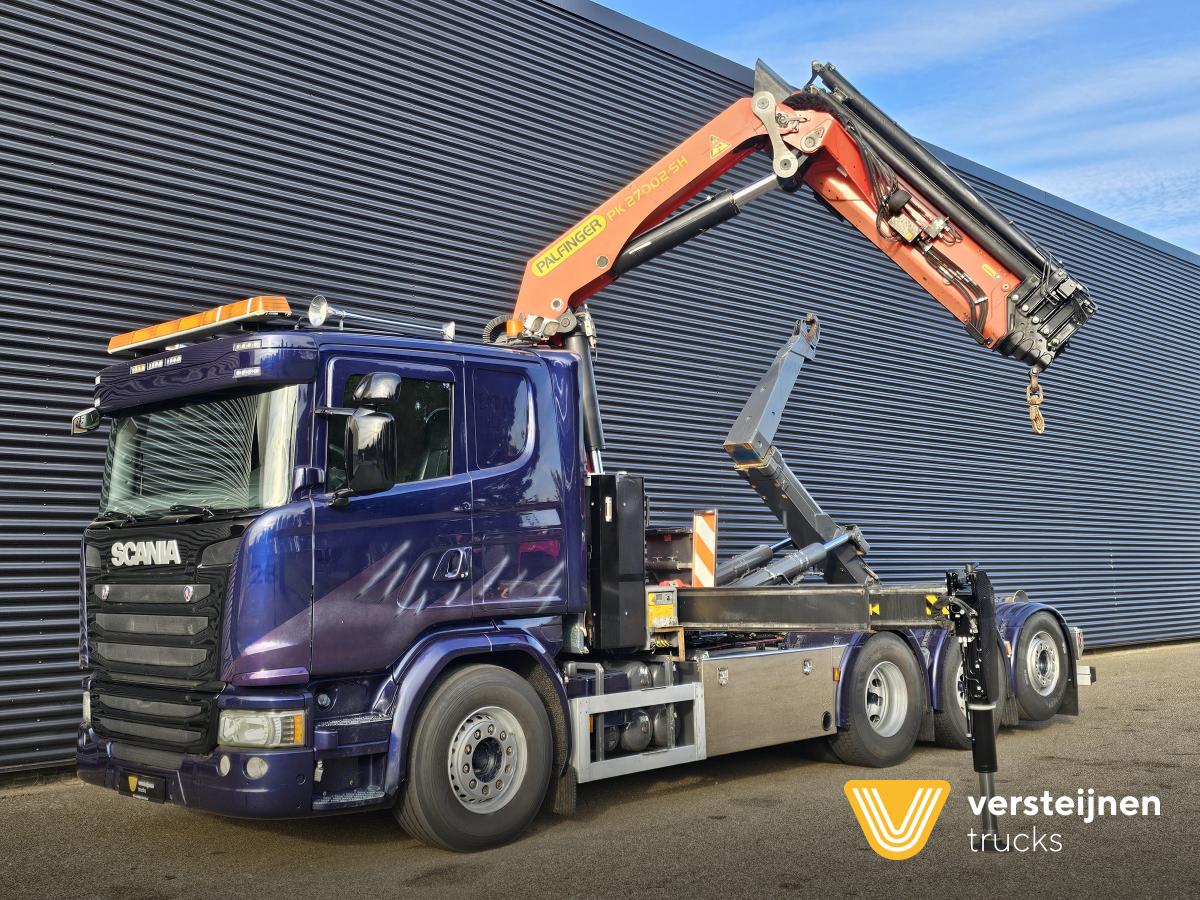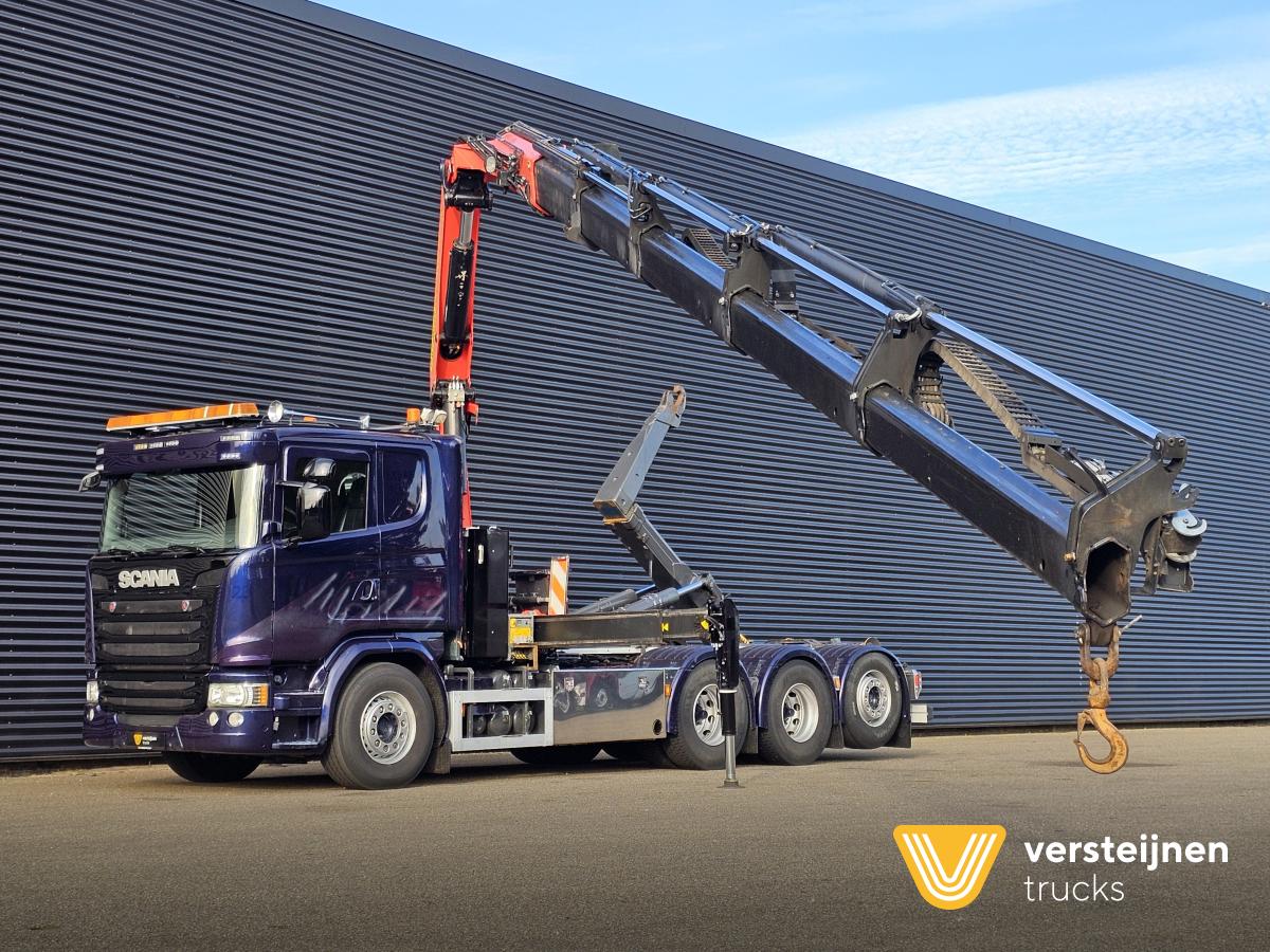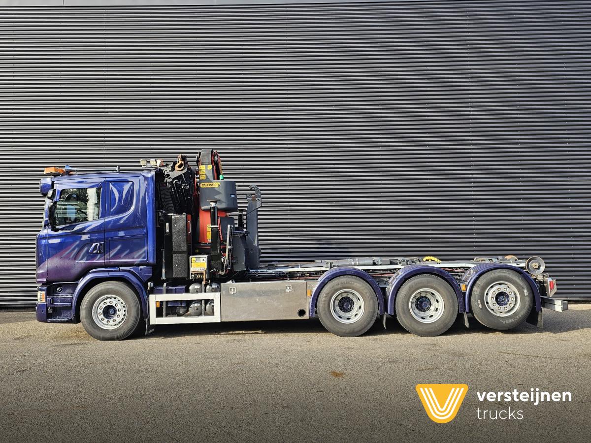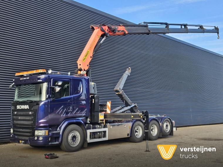 Scania G490 8x4*4HNB Lift and steering axle. Full air suspenison. Opticruise with clutch Crane: Palfinger PK27002-SH D Scanreco radio remote control. 2 x hydraulic outrigger. 5 x hydraulic extension. 5th + 6th function (fly jib) Hooklift: Palfinger T20 20.000 kg. 510 cm |