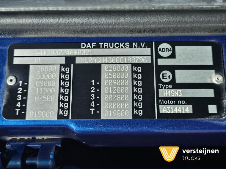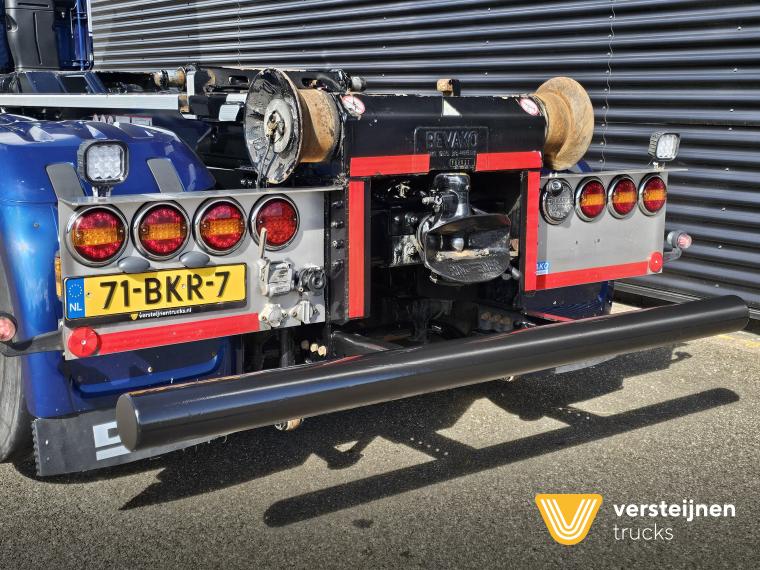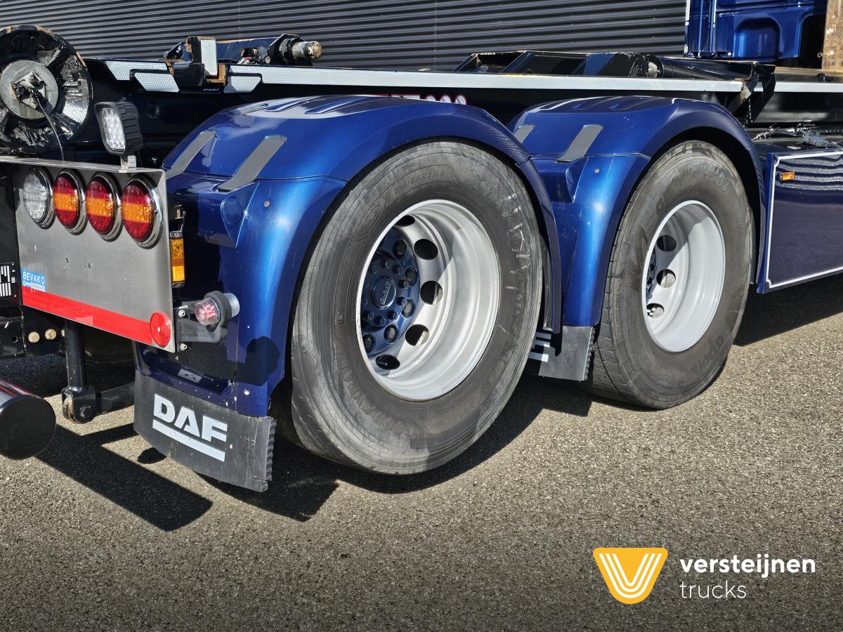 Daf XF 530 6x2 9.000 kg front axle. Engine PTO Container system: VDL S 21-6600 21.000 kg 660 cm hook till rear bumper. 50 mm Ringfeder. |